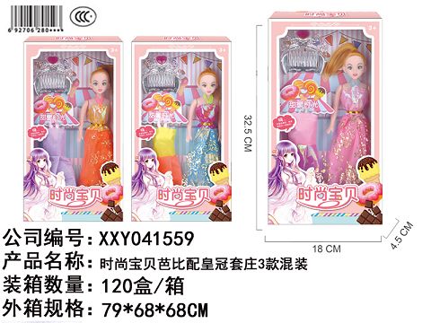Fashion baby barbie with crown villa 3 mixed clothes